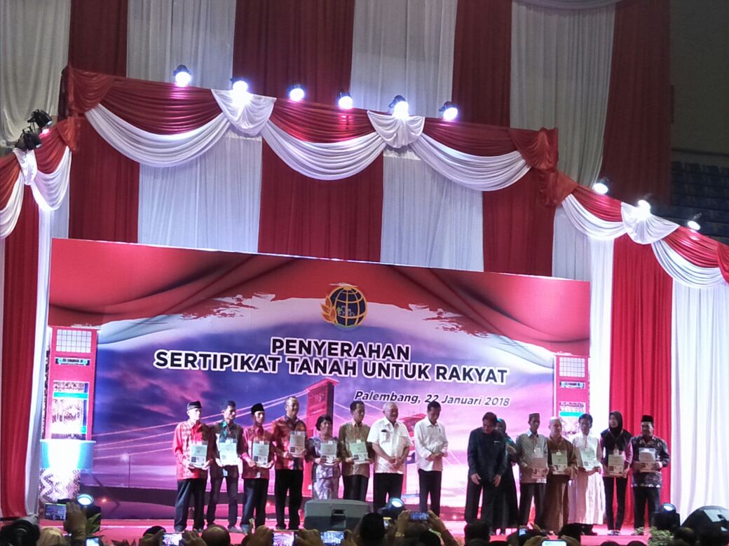 “Sertifikat ini adalah tanda bukti dan hak bagi masyarakat. Kalau sudah pegang sertifikat ini, sudah enak banget. Dikarenakan jika ada yang ngaku-ngaku ini tanah saya. Tidak ini tanah saya, ini buktinya ada sertifikat dan Nama saya ada disini, “kata Jokowi seusai menyerahkan sertifikat tanah di PSCC Palembang, Senin (22/01).