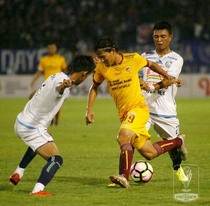 Penyerang Arema kelahiran 1994 itu kembali gagal memanfaatkan peluang emas setelah hanya tinggal berhadapai satu lawan satu dengan kiper Sriwijaya.