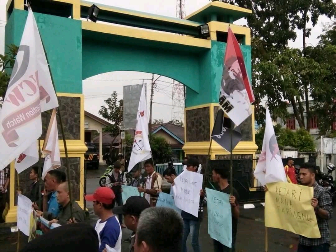 KORDANEWS – Puluhan massa yang tergabung dalam Aliansi Lembaga Swadaya Masyarakat (LSM) Peduli Lahat, kemarin siang melakukan unjuk rasa di depan Kejaksaan Negeri (Kejari) Lahat, Senin (5/2/2018). Unjuk rasa yang dilakukan oleh Aliansi LSM Peduli Lahat itu menuntut beberapa hal terhadap kinerja Kejari Lahat. Seperti meminta mengusut tuntas laporan pelanggaran hukum di Kabupaten Lahat. Kemudian meminta mengaudit tuntas kinerja Kejari Lahat. Lalu meminta untuk menegakan supermasi hukum di Kabupaten Lahat, dan para demonstran juga meminta agar Kejari Lahat lengser karena dianggap Kejari Lahat mandul.