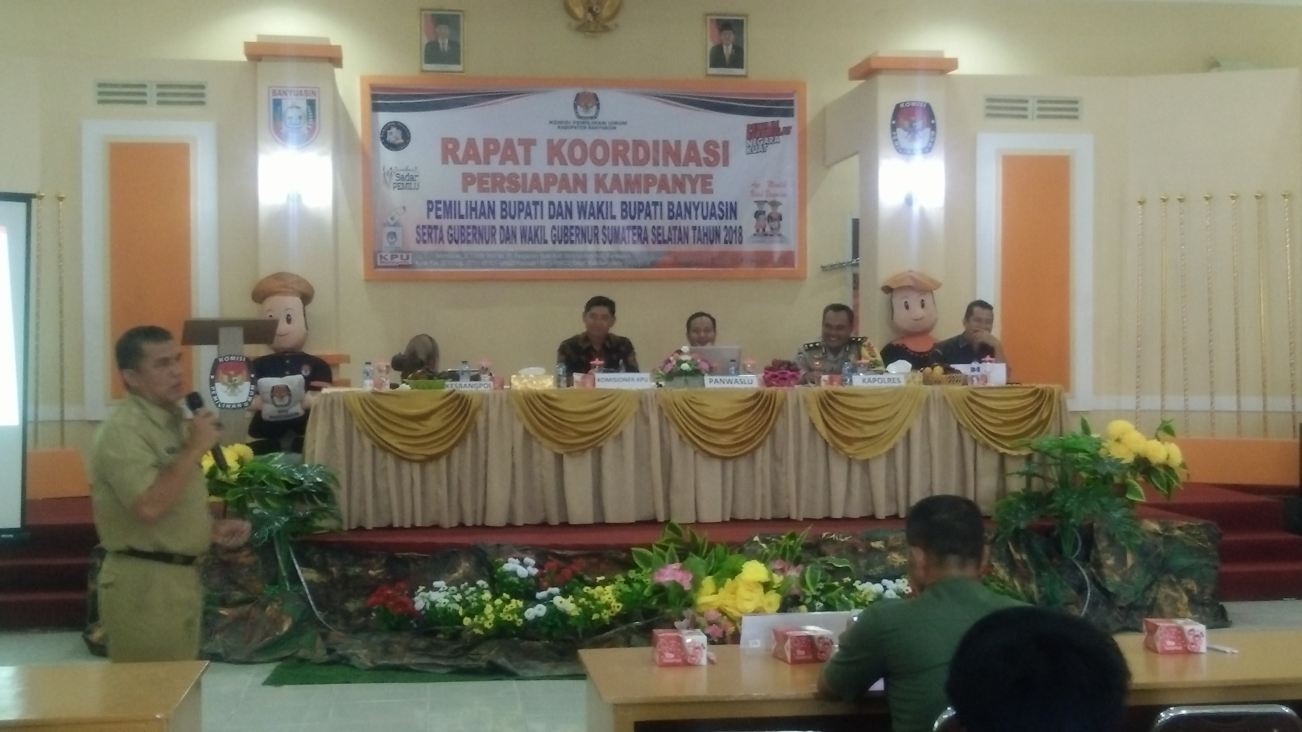 Hal itu dikatakan, Komisioner KPUD Kabupaten Banyuasin, Salinan usai rapat kordinasi persiapan kampanye Pilkada serentak 2018, yang turut di hadiri Polres Banyuasin, Tim Bapaslon Bupati, Panwaslu serta intansi terkait lainnya. di Aula kantor KPUD Banyuasin, Senin (5/2).