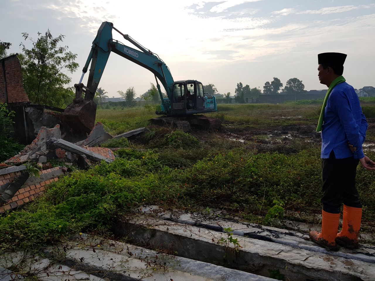 “Karena tidak ada solusi lain, selain harus dirobohkan untuk mengatasi banjir di kawasan ini,” jelasnya saat ditemui di lokasi pembongkaran, Sabtu pagi (10/2/2018).