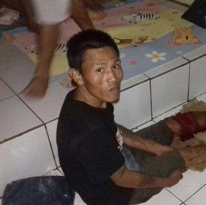 Mencoba berontak dan melakukan perlawanan saat akan ditangkap, setelah diberikan tembakan peringatan dan masih terus berusaha kabur, dengan terarah anggota kepolisian ini melesatkan timah panas dan yang akhirnya mengenai betis sebelah kiri tersangka, yang kemudian membuatnya tersungkur.