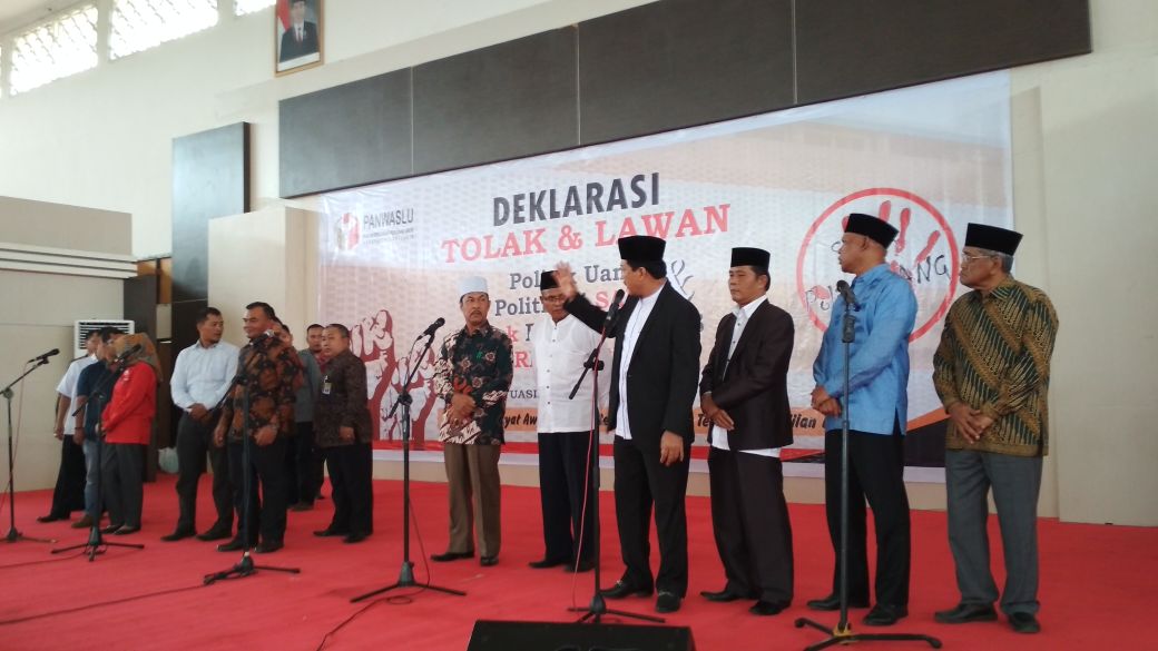 Mereka mengucapkan ikrar bersama-sama untuk menolak dan melawan politik uang serta politisasi SARA.Pembacaan ikrar itu dipimpin oleh Ketua Panwaslu Banyuasin Iswadi S.Pd.