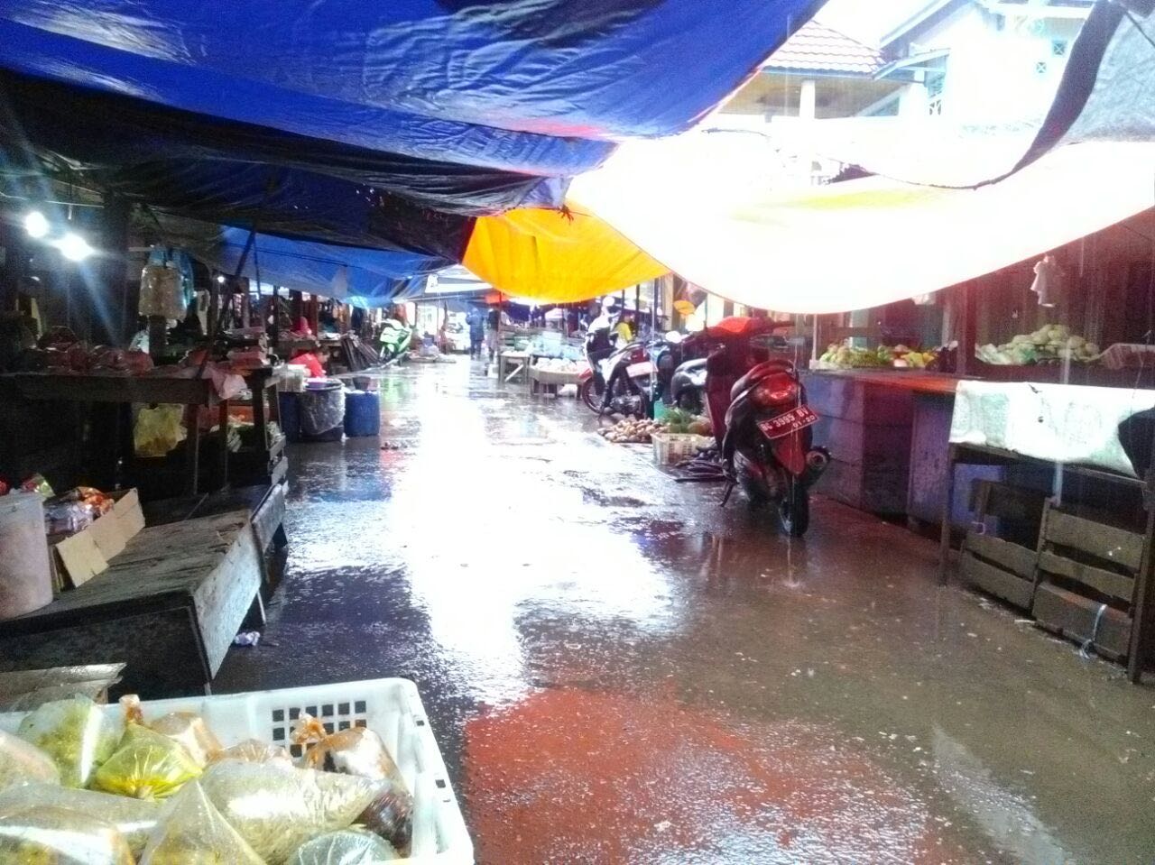 Hujan deras hingga kini masih mengguyur kawasan itu, berimbas pada dagangan mereka yang tidak laku terjual, karena pembeli malas keluar untuk berbelanja. Namun, beberapa pembeli yang datang terpaksa menggunakan payung dan jas hujan.