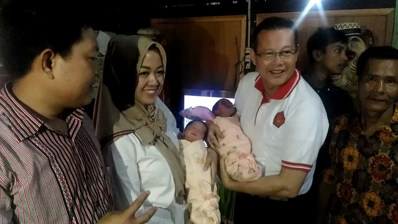 KORDANEWS – Pasangan Leo Harto dan Deli Sartika warga Desa Sukarami Kecamatan Sekayu, Senin (26/2/2018) sangat bergembira. Sebab, selain dikaruniai dua anak kembar, pasangan ini mendapatkan sebuah kebanggaan karena kedua anak kembarnya diberi nama secara langsung oleh Calon Gubernur Sumsel No urut 2, H. Aswari Rivai dengan nama Muhammad Aswari dan Muhammad Irwansyah.