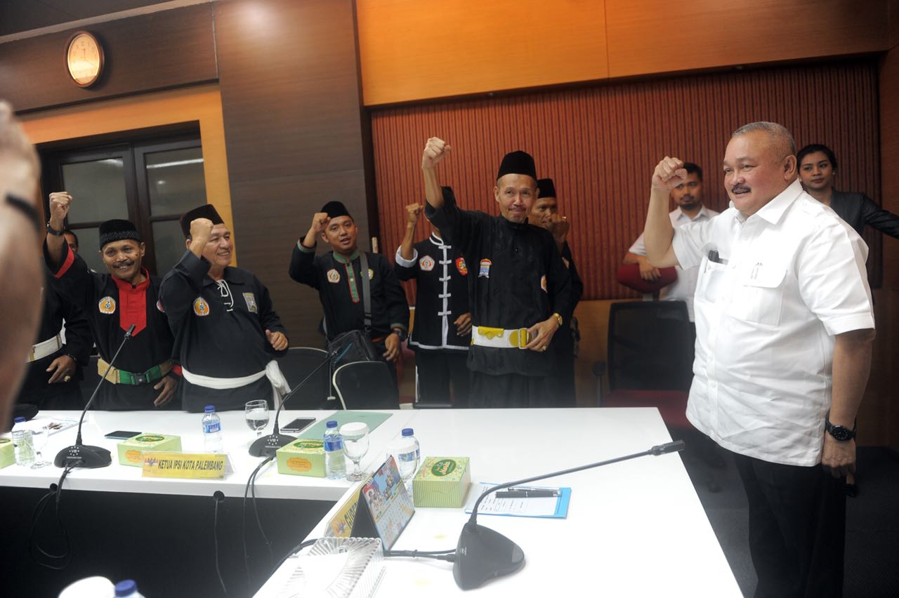 KORDANEWS – Gubernur Sumsel Alex Noerdin menerima audiensi sejumlah pengurus dan anggota Ikatan Pencak Silat Indonesia (IPSI) Kota Palembang di Ruang Rapat Gubernur, Kamis (1/3).