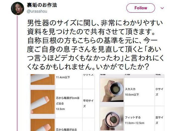 Sebuah akun Twitter berbahasa Jepang bernama @urasahou baru-baru ini menunjukkan cara murah meriah untuk mengukur panjang Mr P, yaitu dengan menggunakan roll dari tisu toilet.