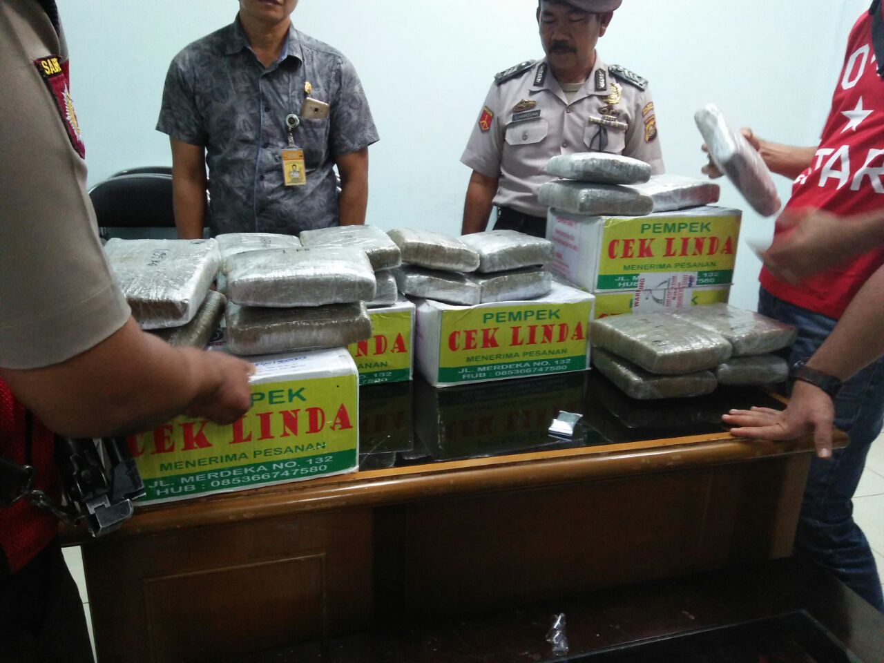 Kemudian, petugas berkordinasi dengan pimpinan dan pihak kepolisian bandara, setelah di cek ternyata di dalam kotak pempek tersebut berisi daun kering yang diduga narkotika jenis ganja. Jumlahnya 20 bal dengan berat total sekitar 20 kilogram yang di pisah menjadi tiga paketan dengan tujuan yang berbeda.
