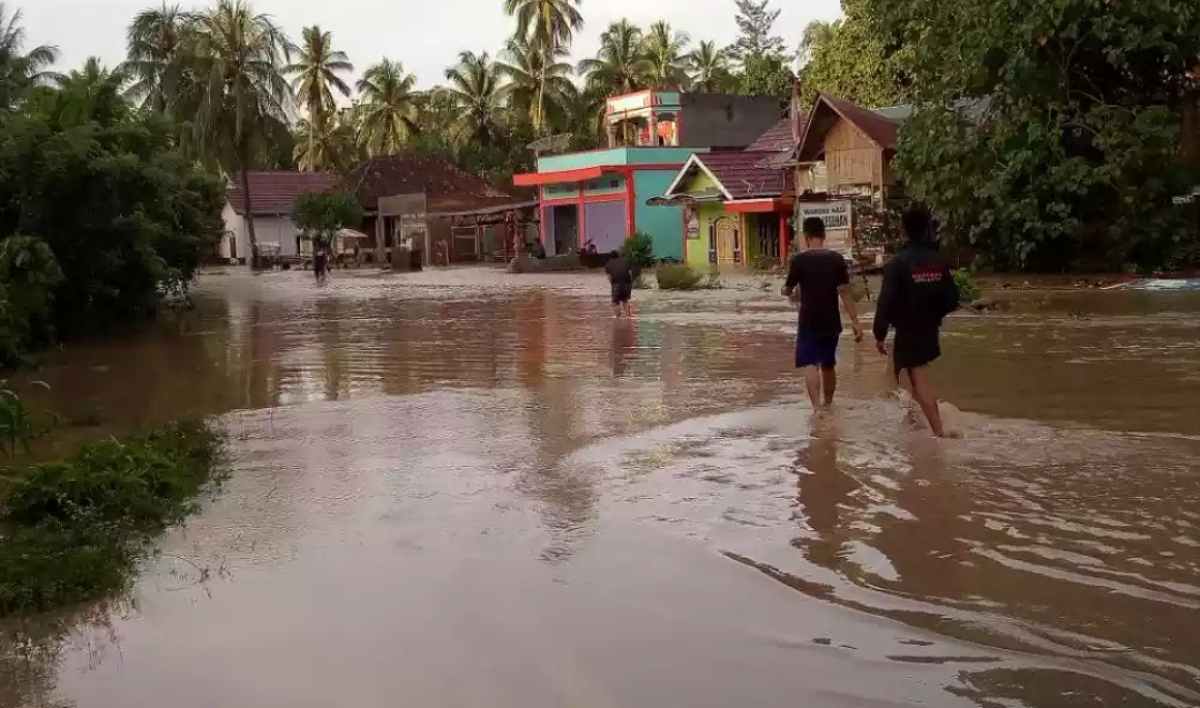 Akibat meluapnya Sungai Kikim, sedikitnya 100 rumah warga di lokasi tersebut terendam banjir setinggi lutut orang dewasa.