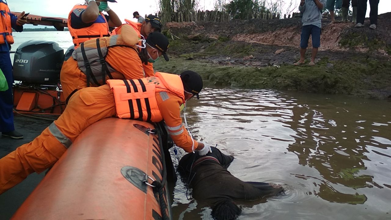 “Sebelum anak saya meloncat ada adik kandung dan bibik yang mengapit badan dia tapi karena tenaganya lebih kuat sehingga adik dan bibik ya, tidak bisa menahannya dia lari dari atas jukung dan langsung meloncat,” katanya.