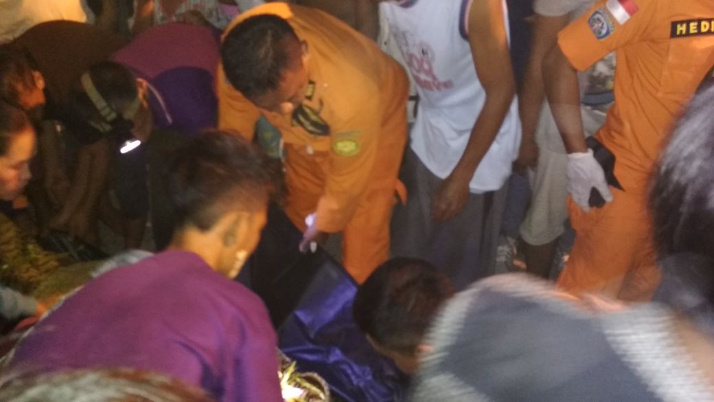 Kemudian kerabat korban yang menggunakan Ketek mencoba untuk meraih jasad tersebut dan diketahui adalah Wulandari, selanjutnya dibawa ke tepi sungai.