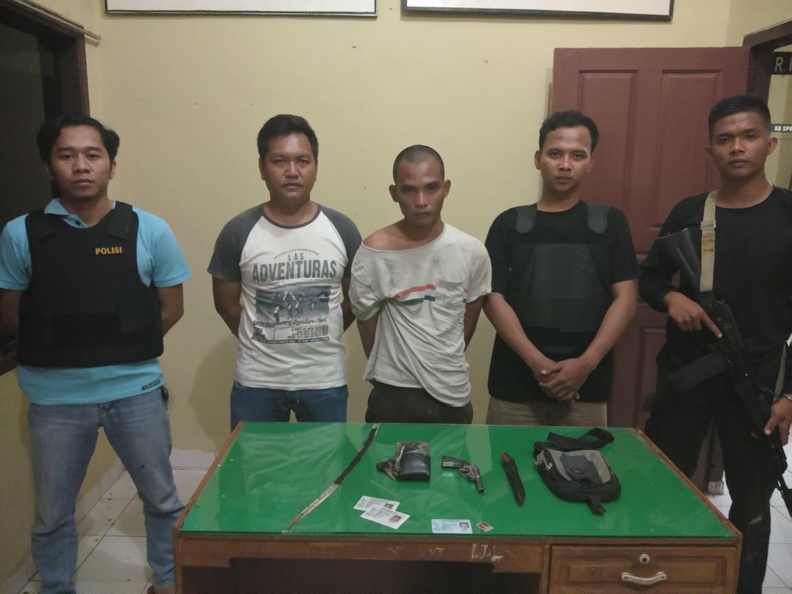 Kapolres Musi Rawas AKBP Bayu Dewantoro melalui Kapolsek Rawas Ilir, Iptu Denhar mengatakan penagkapan itu berawal dari kecurigaan anggotanya yang sedang patroli di sekitar PT BSL melihat tersangka dan dilakukan pengeledahan. Saat digeledah ditemukan sebilah pisau yang diselipkan di pinggang dan senjata api rakitan yang berada di jok motor milik tersangka. Untuk penyidikan lebih lanjut tersangka diamankan di Mapolsek Rawas Ilir.
