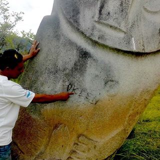 KORDANEWS- Tangan-tangan jahil telah merusak keindahan patung megalitikum yang ada di Taman Nasional Lore Lindu, Poso, Sulawesi Tengah. Patung ini dicorat-coret.