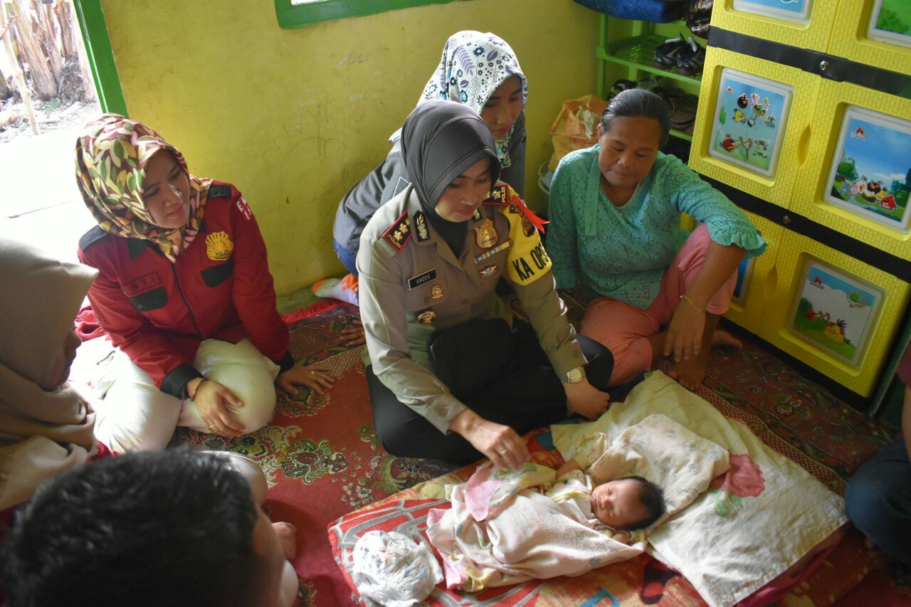 KORDANEWS – Kapolres Muba, AKBP Andes Purwanti di dampingi Kasat Binmas Polres Muba Iptu Ricky Mozan, mengunjungi bayi yang menderita ambiguous genital (kelamin ganda), Kamis (05/04) pagi di kediaman keluarga Arina, Jalur 1 Kayuara, Kecamatan Sekayu, Musi Banyuasin.