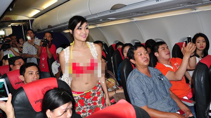 Dari sejumlah foto yang beredar di media sosial, terlihat jelas detik-detik pria pembajak pesawat menyandera pramugari di sebuah sudut di dalam kabin pesawat.