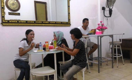 “Untuk minuman, ada es kacang, es campur, es cincau susu, es buah, jus apel, jus melon, jus naga merah, jus pokat, es dogan, es jeruk, es teh manis dengan harga mulai dari Rp. 2.000 sampai dengan Rp. 15.000,” tambahnya.