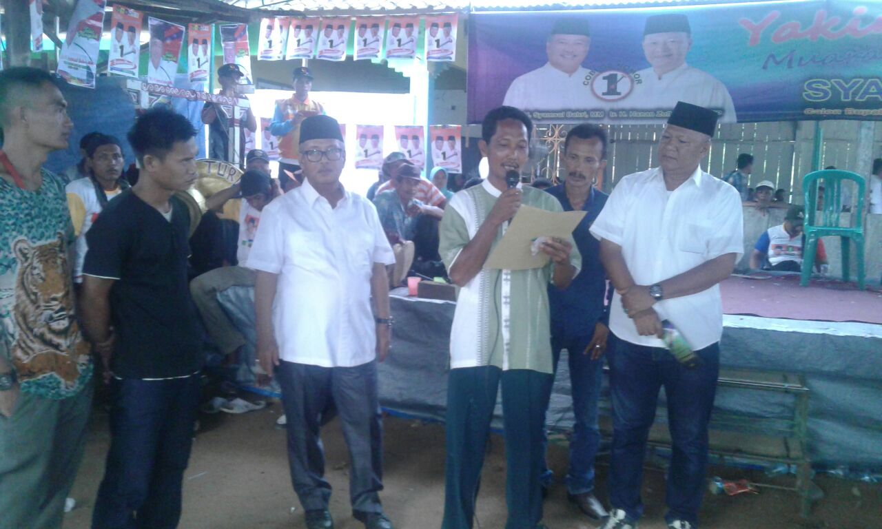 KORDANEWS – Saat melakukan kunjungan ke Desa Baru Rambang, dan Sumber Rahayu, Kecamatan Rambang, pasangan calon nomor urut satu Ir H Syamsul Bahri dan Ir H Hanan Zulkarnain (SBH) disambut meriah oleh ratusan masyarakat kecamatan tersebut, Minggu (22/04/2018).