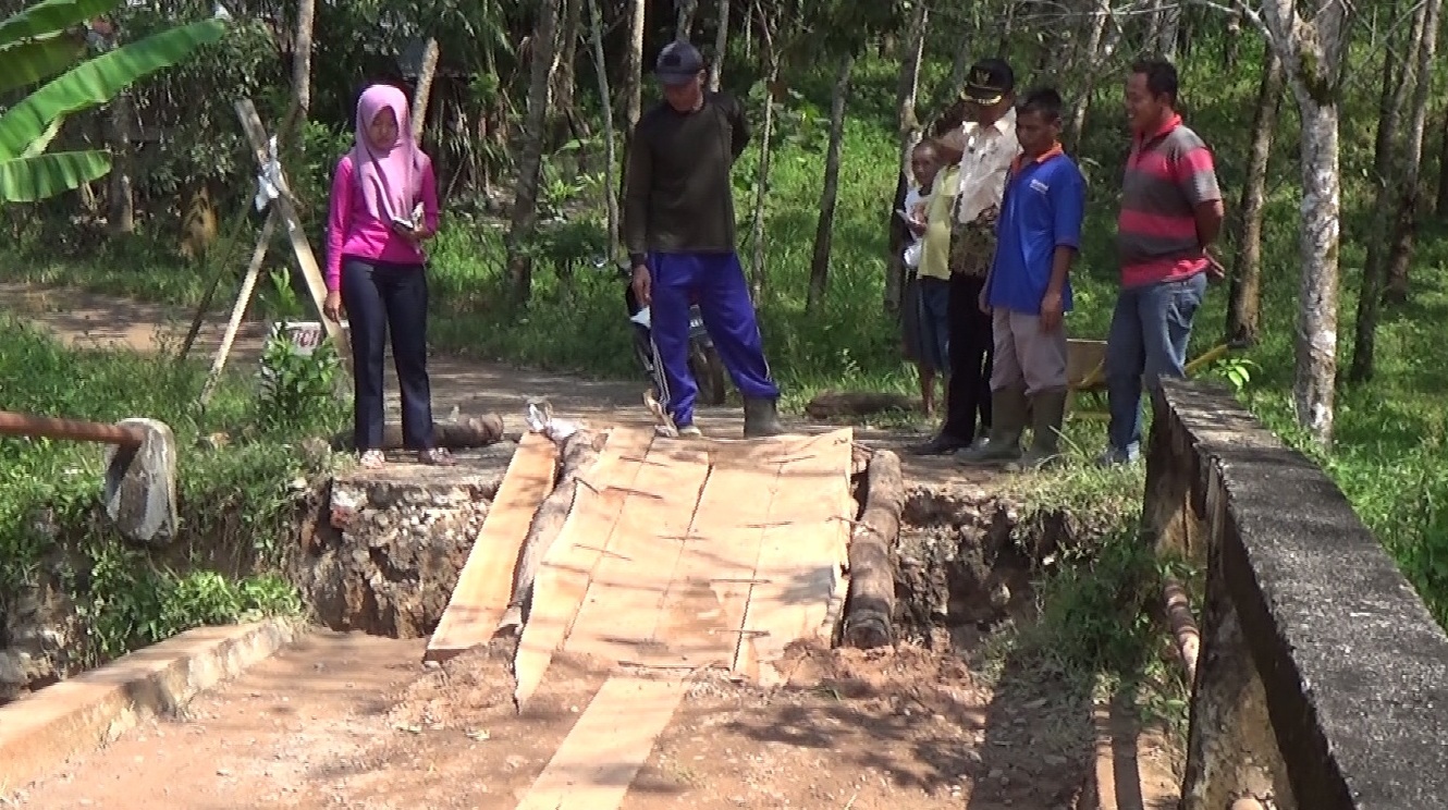 Ketua rt 04 sari bunga mas suprapto menjelaskan kejadian amblesnya jelan ini, akibat curahan hujan yang cukup deras mengakibatkan meluap saluran anak sungai sehingga terjadi tanah mables.”sejak jam 9 amblesnya tanah diseputaran jembatan ini, sengingga warga rt 04 aktifitasnya terganggu ”bebernya.