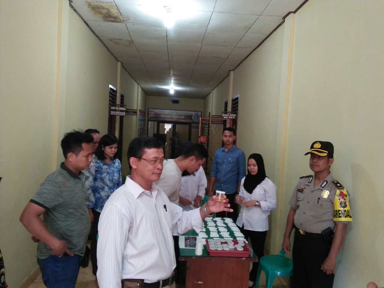 Pelaksanaan tes urine berlangsung di ruang penyidik Sat Res Narkoba Polres OI, Kamis (3/5) dan disaksikan langsung oleh Kepala BNNK OI AKBP H Abdul Rahman dan Kabag Ops Kompol Erlangga. Hasilnya, anggota Sat Res Narkoba Polres OI dinyatakan negatif mengkonsumi narkotika.
