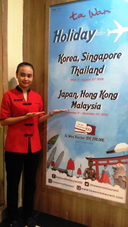 Lebih lanjut dikatakannya, setelah 22 tahun berdiri TaWan dari tahun 1996 di Jakarta, TaWan memberikan penawaran dan kesempatan istimewa bagi para konsumen untuk bisa memilih berlibur ke sejumlah negara. Seperti Korea, Singapura, Thailand, Jepang, Hong Kong, dan Malaysia dengan persyaratan yang berlaku.