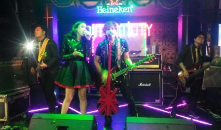 “Tapi jangan dahulu cinta terlarang, kalau kami menyanyikan lagu tersebut berarti kami akan mengakhiri tampil disini, apa semua yang hadir disini mau kalau kami selesai bernyanyi,” tanya Mitha kembali.