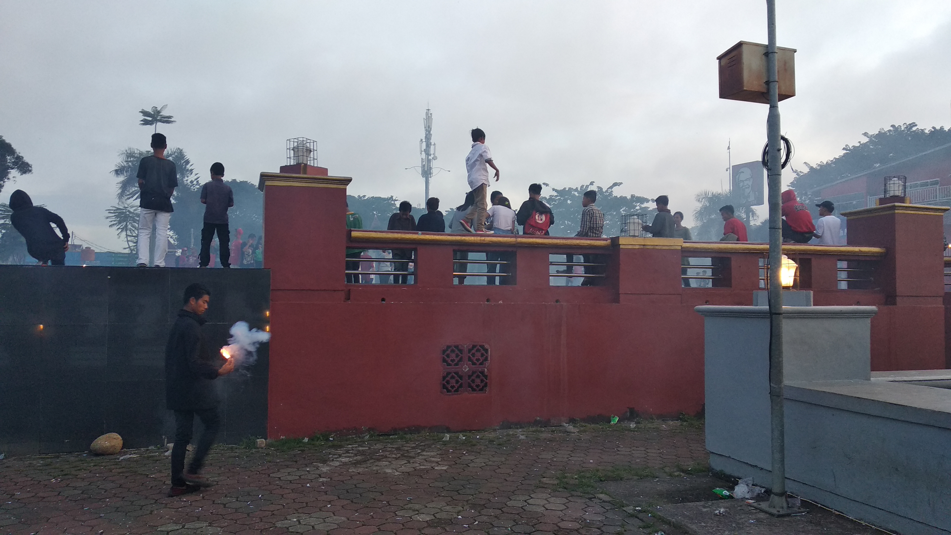 KORDANEWS – Kepulan asap putih menyelimuti pelataran Benteng Kuto Besak (BKB), Kamis (17/5). Ternyata asap tersebut disebabkan dari ledakan pentasan oleh sekumpulan anak-anak muda.