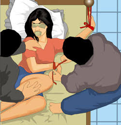 HK terbangun ketika tiga pria masuk di kamarnya. Mereka adalah Riski (19), Amrul (29), dan Endra (20).