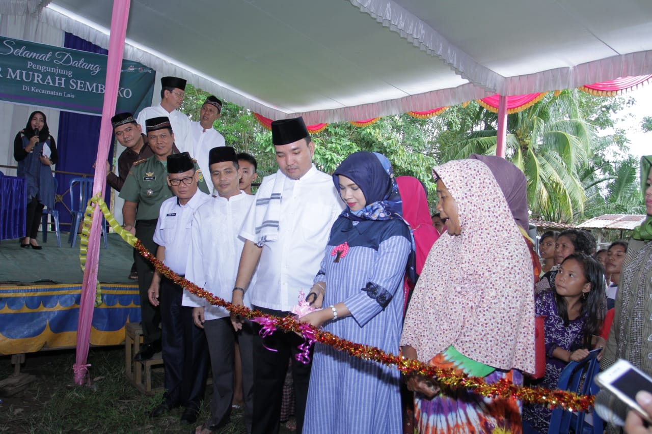 Pasar murah sembako yang digelar diresmikan dengan simbolis pengguntingan pita oleh Plt Ketua TP PKK Muba, Susy Imelda Beni didampingi Plt Bupati Muba, Beni Hernedi beserta Asisten Setda Bidang Administrasi Umum, staf ahli Bupati bidang pembangunan dan OPD terkait.