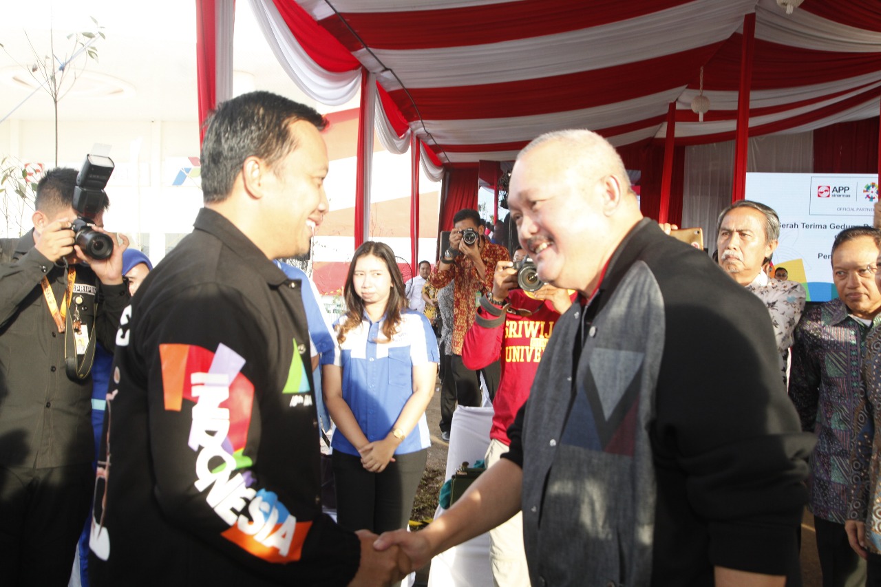 Acara serah terima dihadiri FKPD Provinsi Sumsel, Managing Direktur Asia Pulp and Paper (APP) Sinar Mas, Saleh Husin, Direktur APP Sinarmas, Suhendra Wiriadinata, serta Direktur Lembaga Pengelola Dana dan Usaha Keolahragaan, Agus Hardja Santana