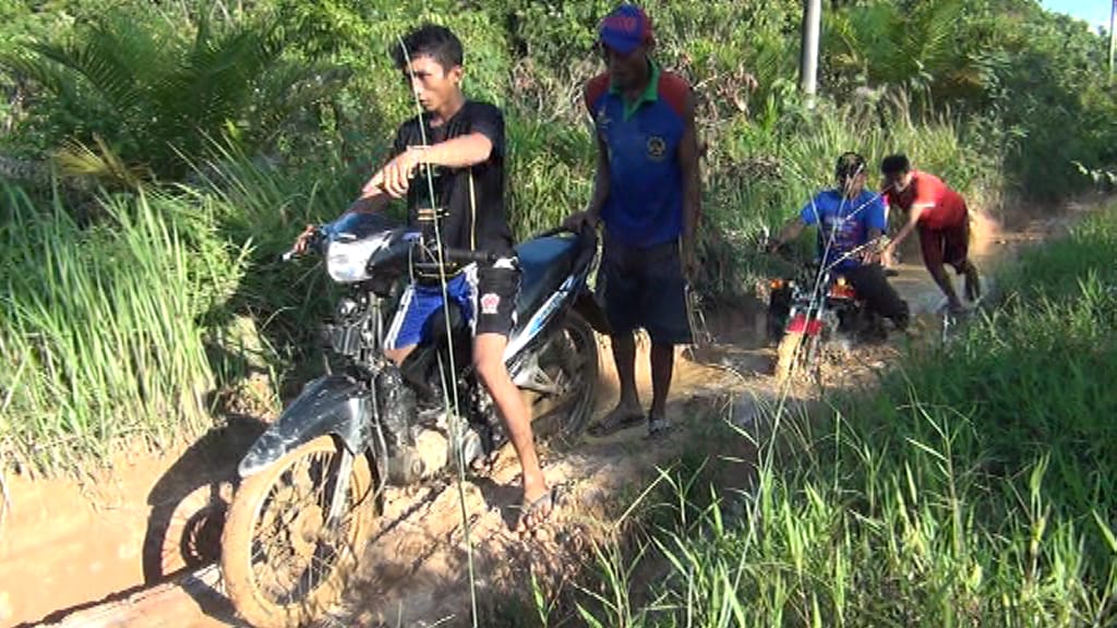 KORDANEWS – Akses jalan sekitar 12 kilometer menuju Desa Tanjung Bali, Kecamatan Batang Hari Leko, Kabupaten Musi Banyuasin (Muba). Kondisinya hancur dan berlumpur, sehingga untuk beraktivitas keluar masuk desa warga terpaksa menerobos jalan berlumpur dan semak belukar.