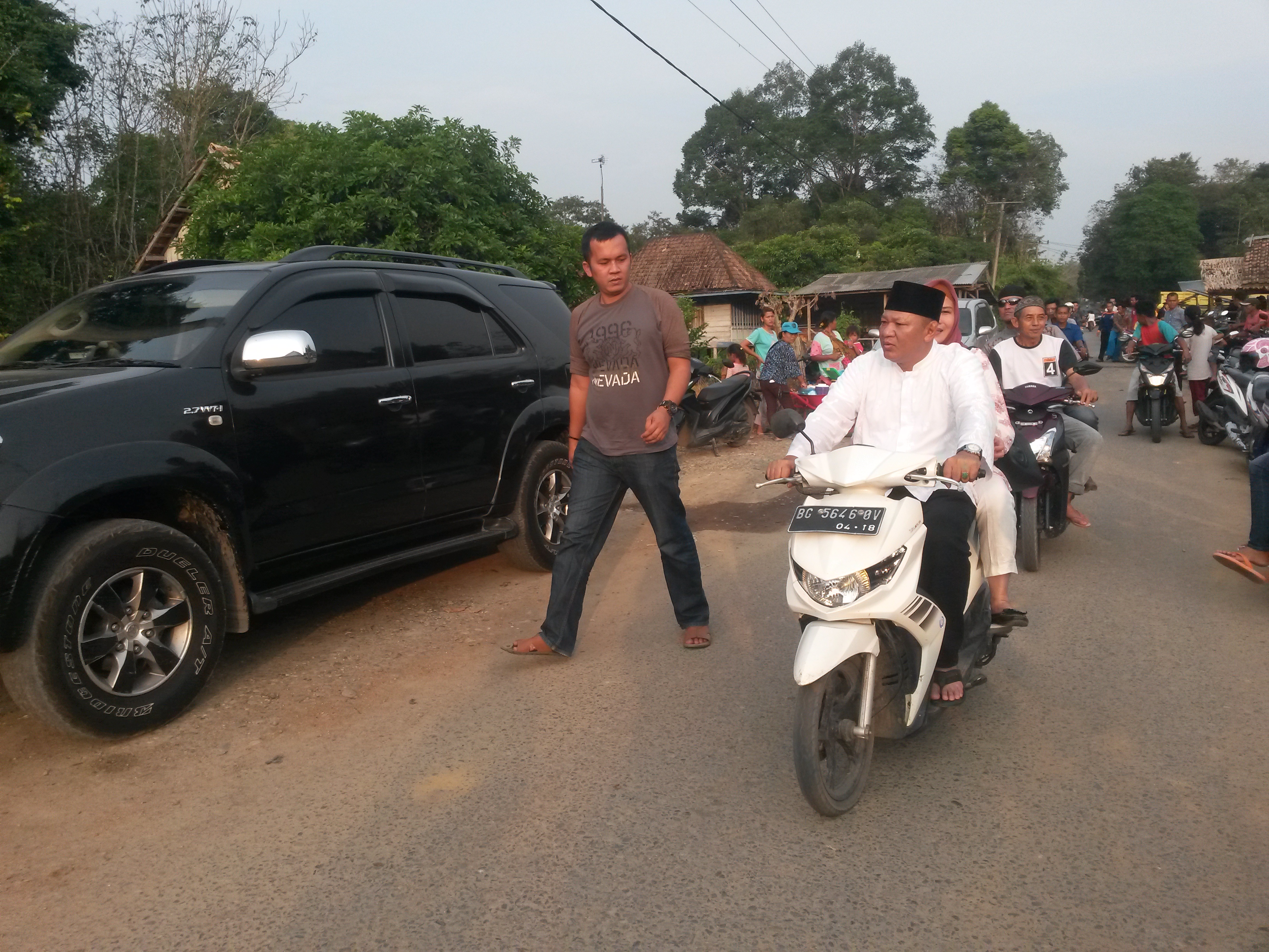 urut satu, Ir H Hanan Zulkarnain terpaksa menggunakan sepeda motor hanya