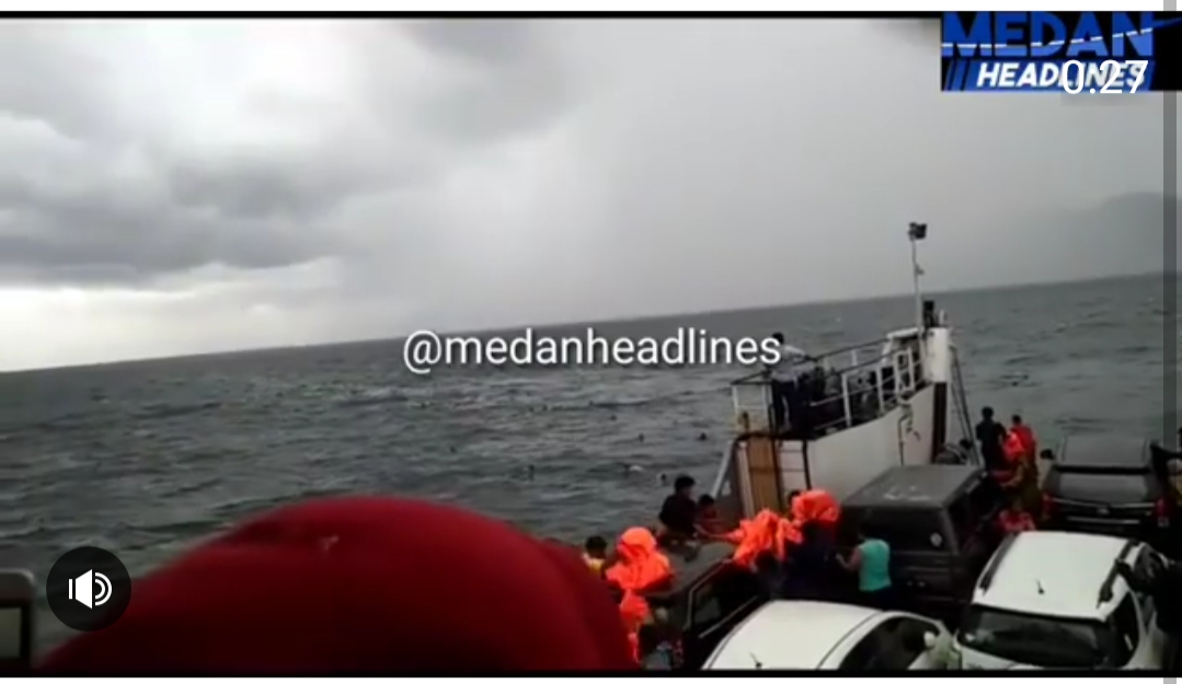 Kapal tenggelam dihantam ombak Danau Toba dan angin.