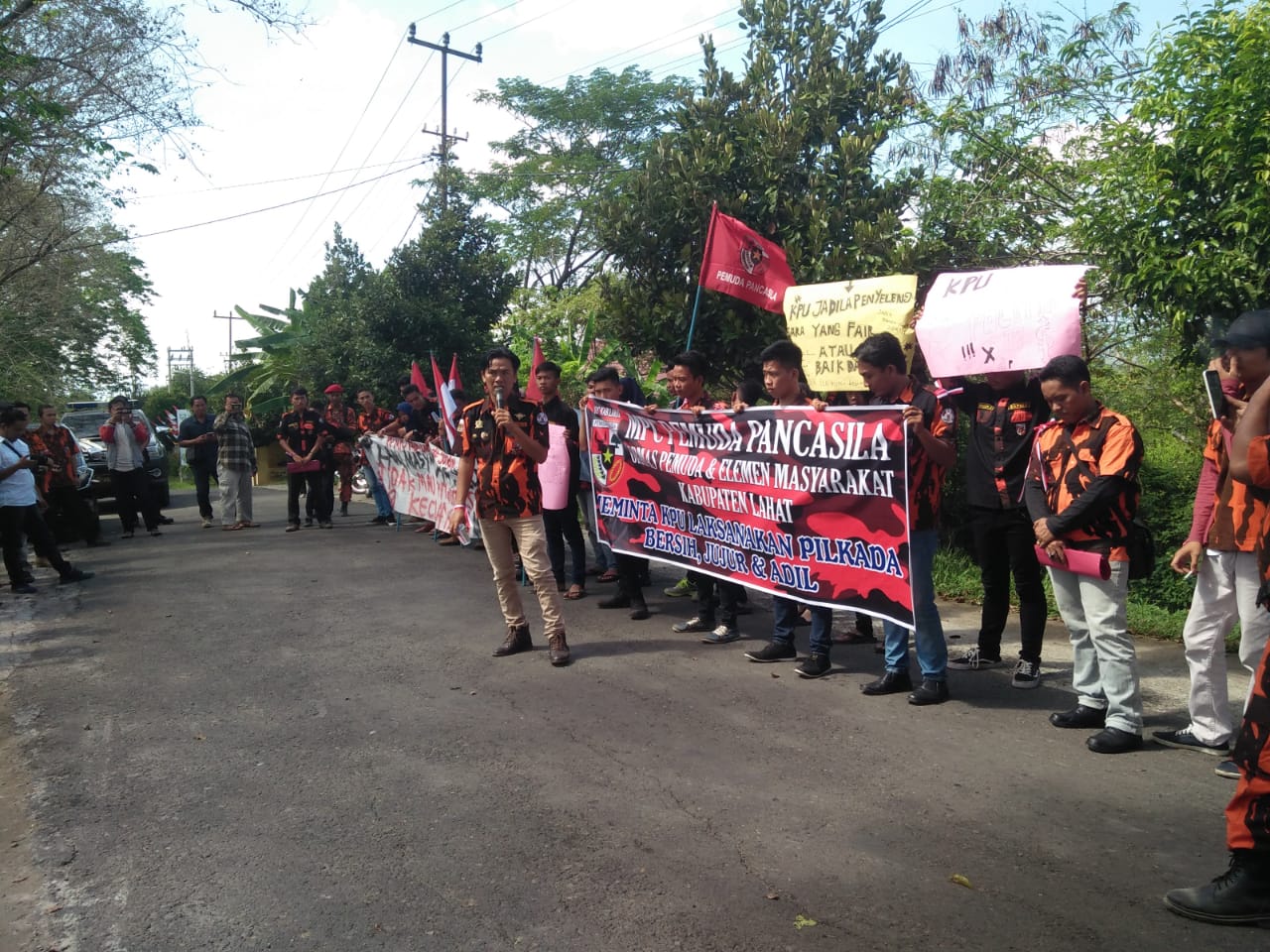 Dalam orasinya, Habibullah selaku pengurus MPO PP sekaligus orator dalam aksi ini menyerukan, bahwa PP akan mendukung pelaksanaan Pemilukada Lahat kelak berjalan aman dan lancar.