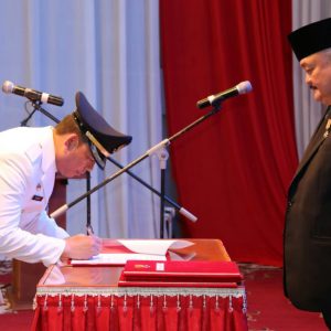 KORDANEWS – Gubernur Sumatera Selatan, Ir H Alex Noerdin resmi melantik Teddy Meilwansyah sebagai Penjabat Bupati Muara Enim, di Gedung Olahraga Kabupaten Muara Enim, Kamis (21/06/2018) pukul 15.00.