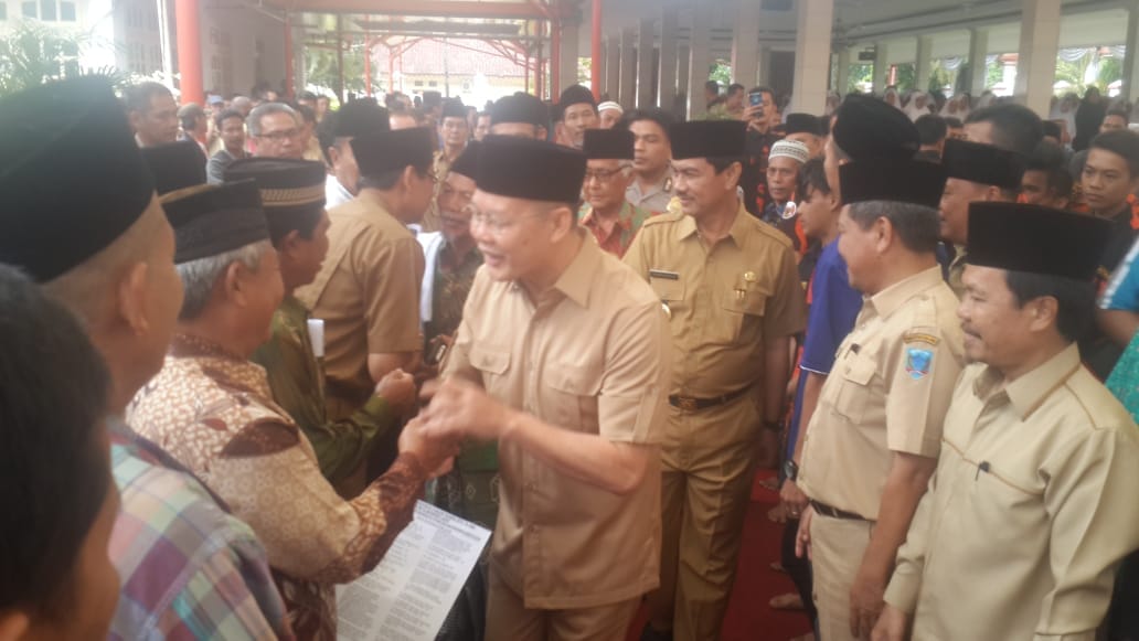 Hari pertama menjabat, Aswari bertatap muka dengan ribuan warga dari berbagai elemen masyarakat melalui acara halal bihalal dan istighosa di rumah dinas pendopoan bupati lahat.