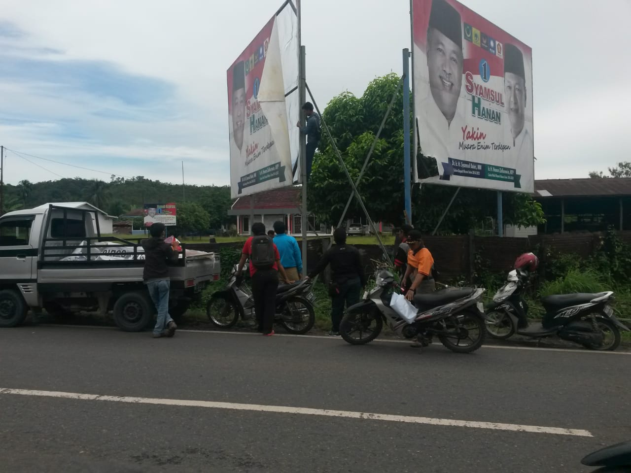 Pembersihan APK yang dipimpin langsung oleh Panwaslu bersama dengan satuan polisi pamong praja (Pol PP) dan pihak keamanan dari Polres Muara Enim guna melakukan penertiban.