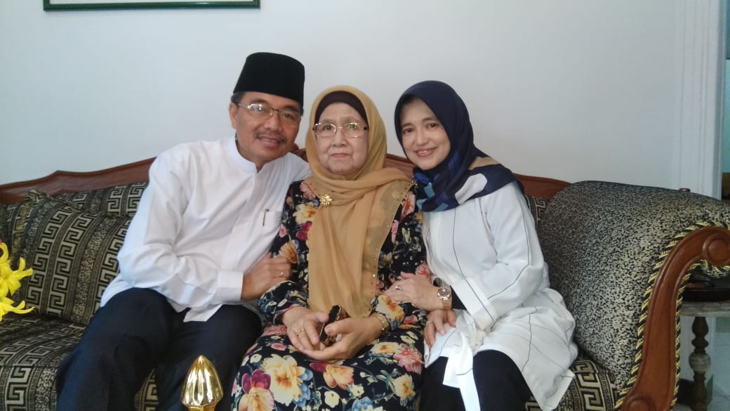 Mengenakan pakaian putih dibalut celana dasar dan kopiah hitam, pasangan Sarimuda ini ditemani sang istri tercinta Elya Atika menemui sang ibunda.