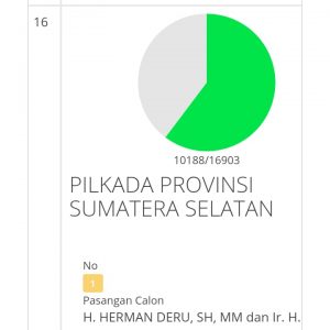 KORDANEWS – Komisi Pemilihan Umum (KPU) melakukan perhitungan cepat untuk seluruh pelaksanaan pilkada serentak di Indonesia yang dapat diakses di website resmi KPU yakni https://infopemilu.kpu.go.id/pilkada2018/hasil/cepat/t1/sumatera_selatan.