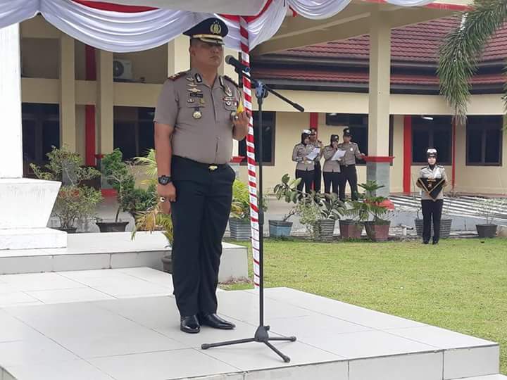 Upacara Korp Raport tersebut didipimpin langsung oleh Kapolres Banyuasin AKBP Yudhi Surya Markus Pinem, S.IK sekaligus menyematkan pangkat setingkat lebih tinggi kepada 4 ( empat ) perwakilan personil yang naik pangkat.
