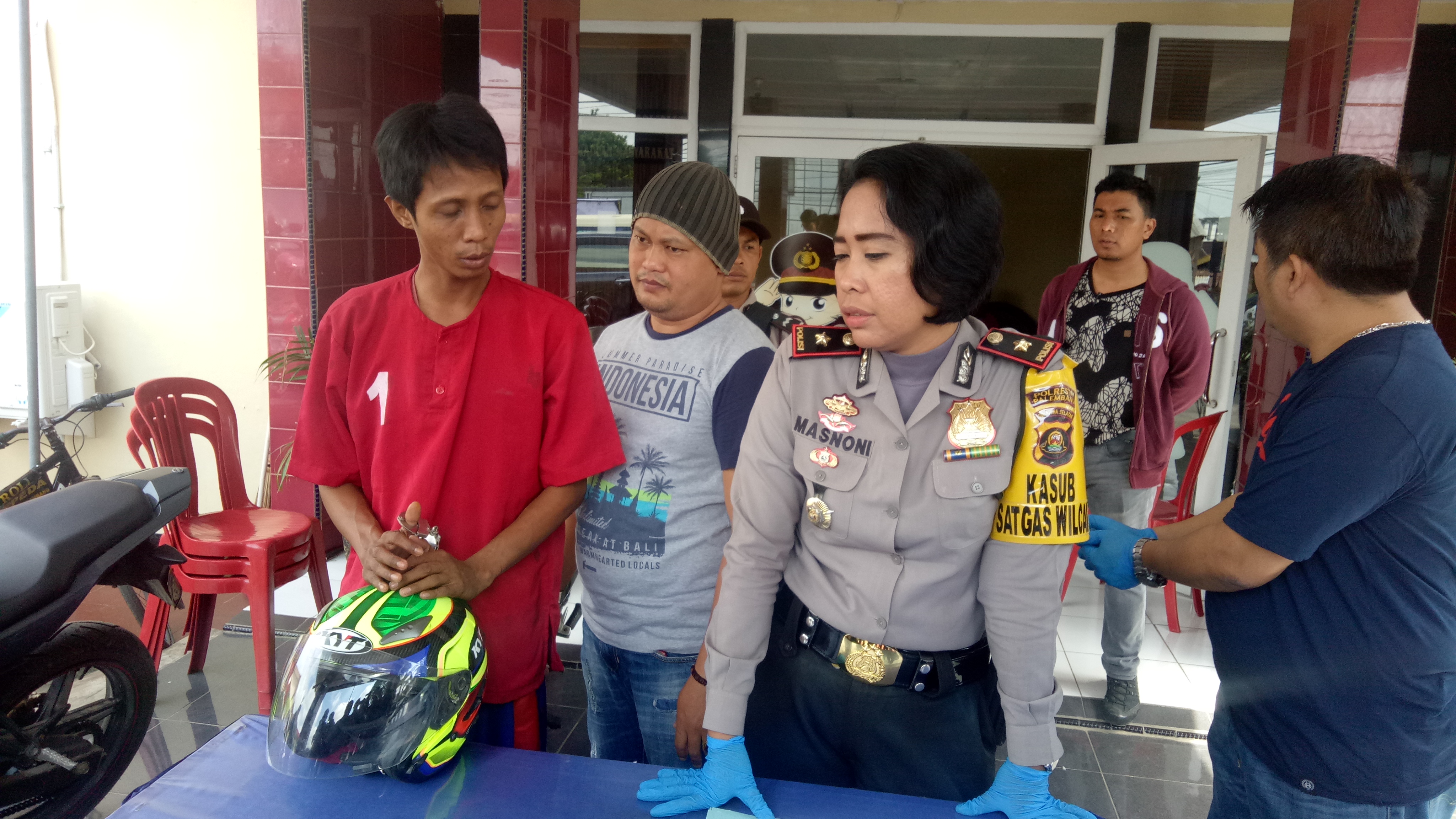 KORDANEWS – Ardi Surahman (26) harus berurusan hukum dengan Polsek Ilir Barat I Palembang setelah ketahuan mencuri helm di parkiran mall Transmart. Jumat (22/6/2018).