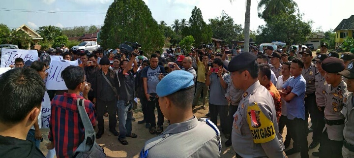 KORDANEWS – Ratusan massa dari persatusan mahasiswa dan masyarakat peduli Pilkada lakukan aksi ujuk rasa di halaman Kantor Panwaslu Kabupaten Banyuasin, Jumat (6/7/2018).