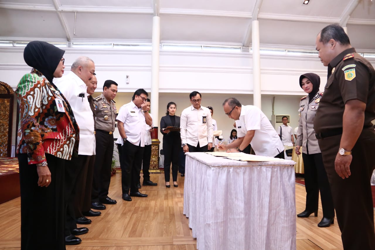 KORDANEWS – Pemerintah Kabupaten Musi Banyuasin (Muba) melakukan penandatanganan perjanjian kerjasama Aparat Pengawasan Internal Pemerintah (APIP)-Aparat Penegak Hukum (APH) dengan Kajari dan Kapolres dalam penanganan laporan atau pengaduan masyarakat yang berindikasi tindak pidana korupsi pada penyelenggaraan Pemerintah Daerah di Griya Agung, Rabu (12/7).