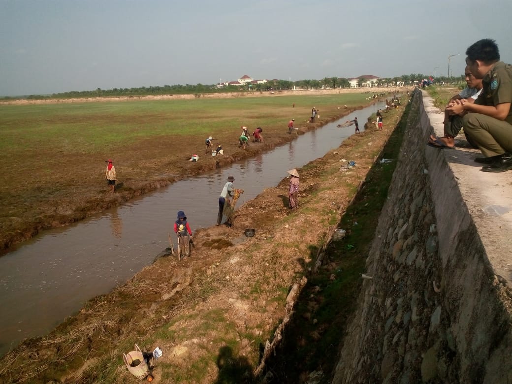 Mereka membawa perlengkapan untuk menangkap ikan seperti jala, ember dan karung untuk tempat menaruh ikan. Menurut Abdul Malik, seorang warga Desa Sejaro Sakti, dia dan 14 rekannya sedang memanfaatkan lahan ini untuk menangkap ikan yang dilelang rekannya.