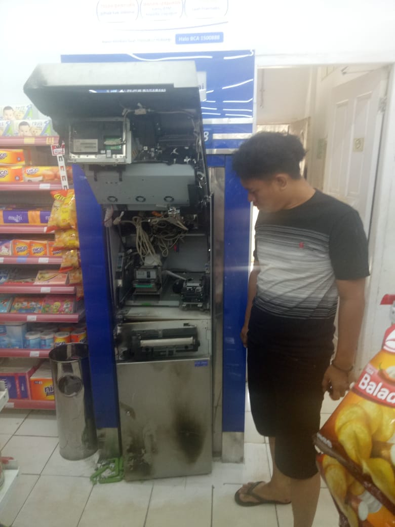 KORDANEWS – Mesin Anjungan Tunai Mandiri (ATM) yang berada di sebuah minimarket di persimpangan tiga Jalan Soak Simpur, RT 69 RW 9, No 73 Kelurahan Sukajaya, Kecamatan Sukarame, Palembang dibobol kawanan perampok, Sabtu (21/7/2018) sekitar pukul 03.50.