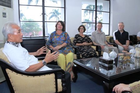 menceritakan kemajuan Kota Palembang kepada empat orang bule asal United
