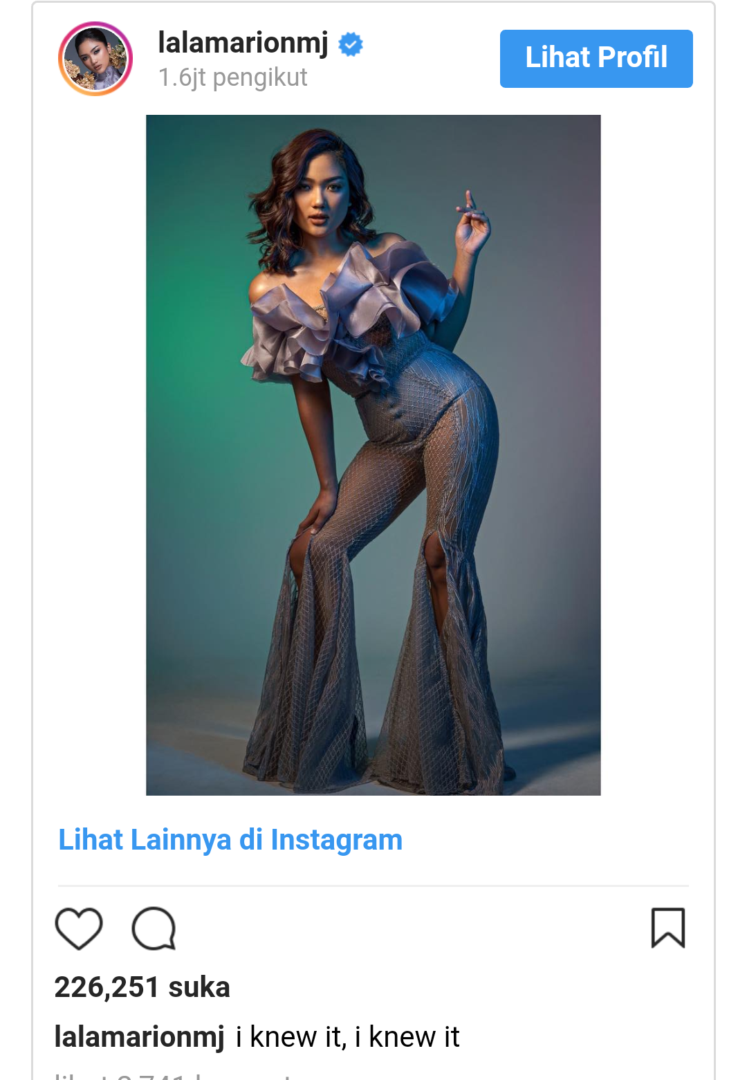 Dengan lebih dari 1,6 juta followers di Instagram, foto-foto yang diunggah Marion Jola selalu menyedot perhatian netizen.