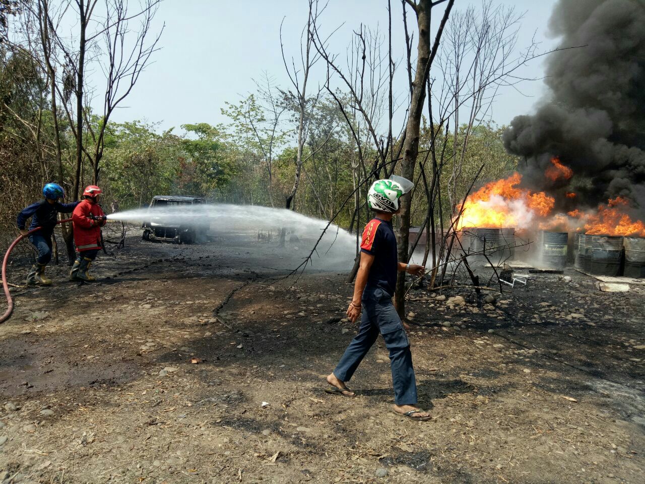 sehingga terjadi kebakaran yang mengakibatkan ledakan drum minyak.