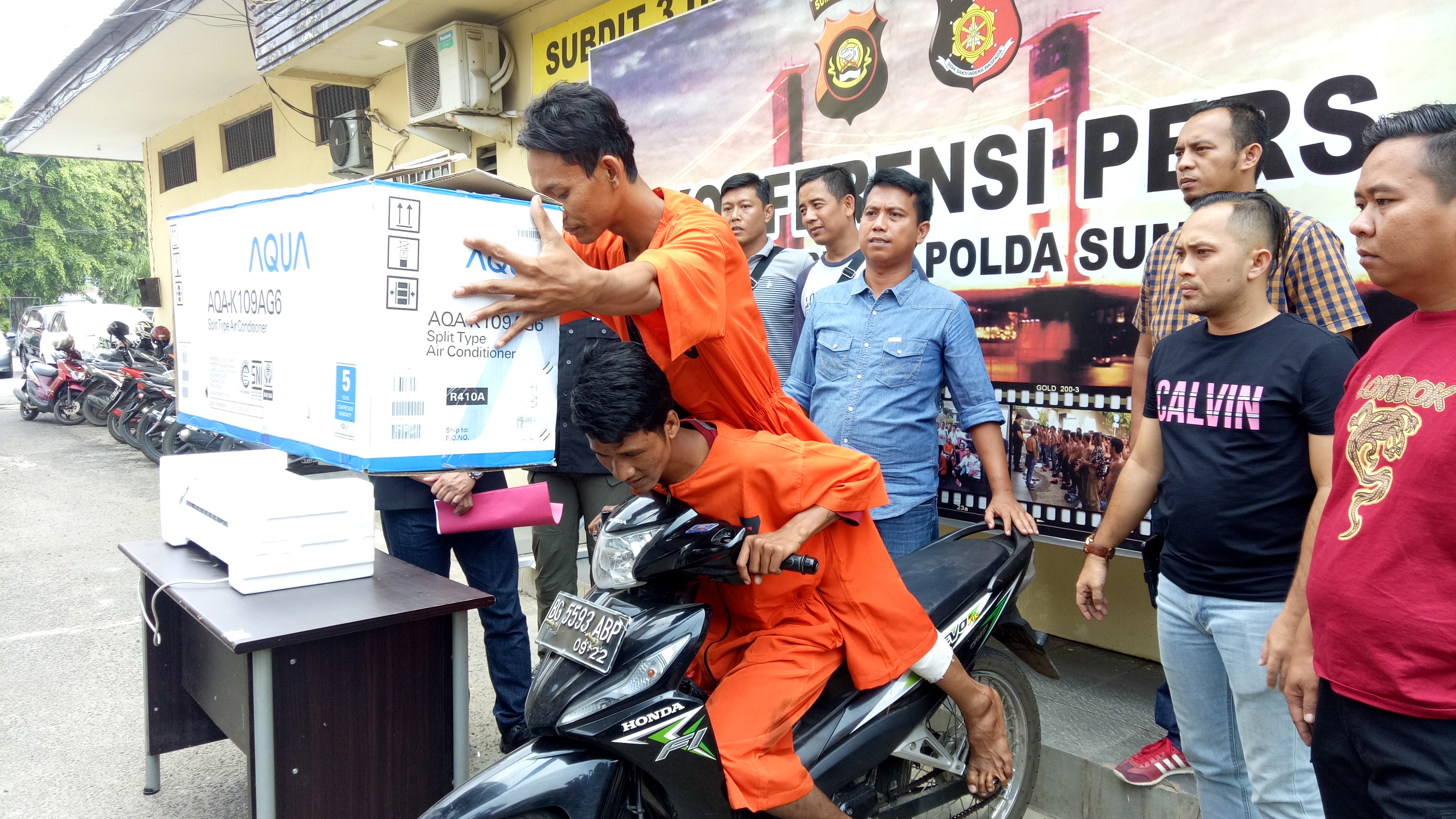 Dari tangan pelaku polisi mengamankan barang bukti satu unit sepeda motor honda Revo BG 5593 ABP dan satu unit AC hasil dari bajing loncat,” pungkasnya. (Dik)