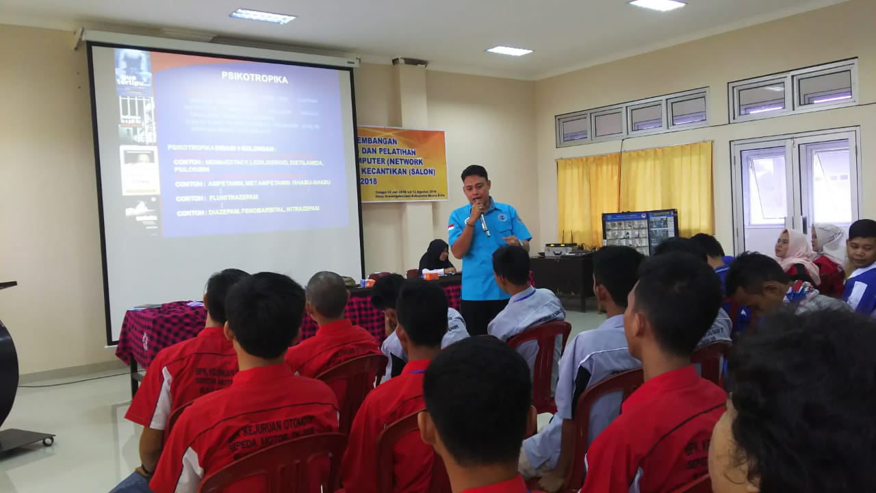 Tidak mau kecolongan, BNNK Muara Enim berikan penyuluhan kepada peserta yang sedang mengikuti pelatihan di Balai Latihan Kerja Kabupaten Muara Enim, Kamis (2/8/2018).