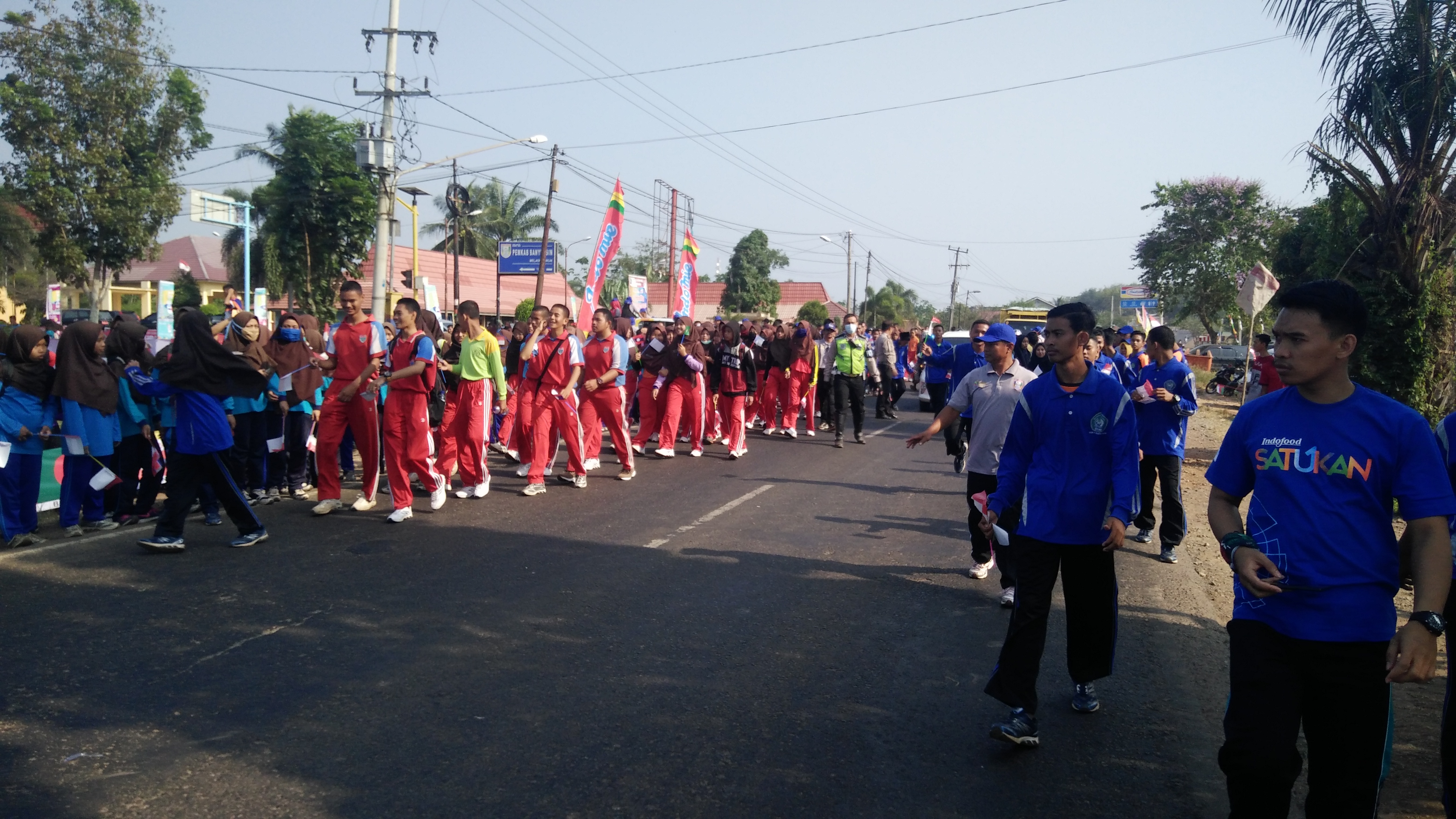 Disepanjang jalintim ini, nampak ribuan pelajar se-Kecamatan Banyuasin III memegang bendera merah putih dan bendera peserta Asian Games dengan panjang 10 KM.